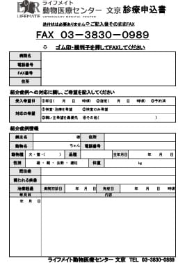 当センターでの治療終了後は、かかりつけの動物病院へ引き継ぎを行い、診療報告書をお送りいたします。